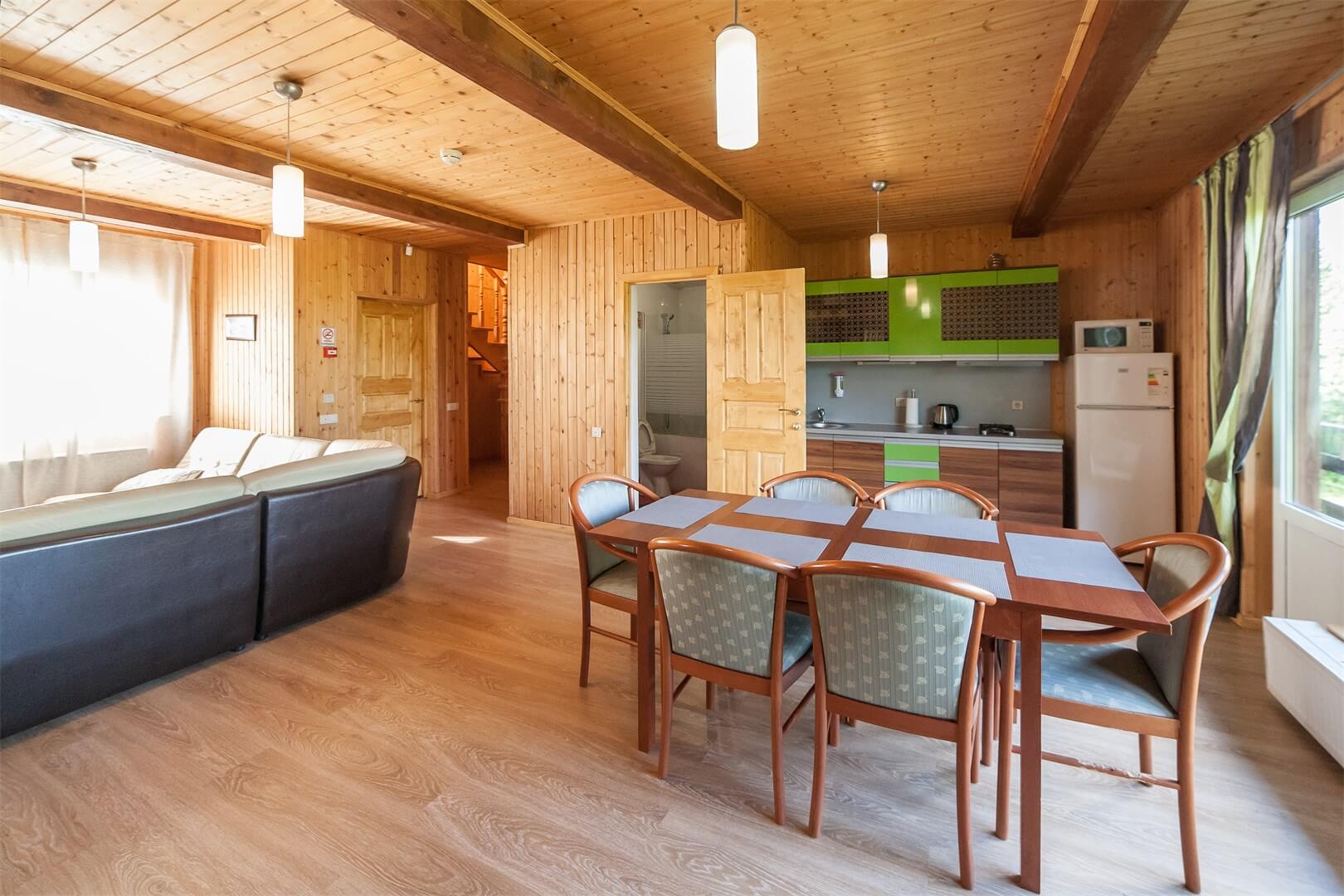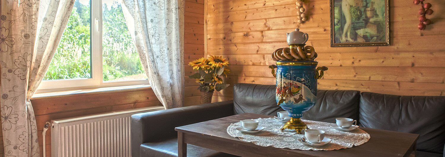 В каждом коттедже есть кухонная зона для приготовления пищи с газовой плитой, финская сауна, мангальные зоны для барбекю, телевизор, холодильник.