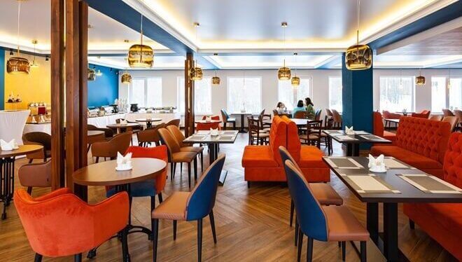 Завтраки проходят с 9.00 до 11.00, обеды с 14.00 до 15.00, ужины с 19.00 до 20.30/21.00 в будние/выходные дни.