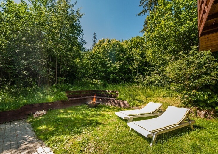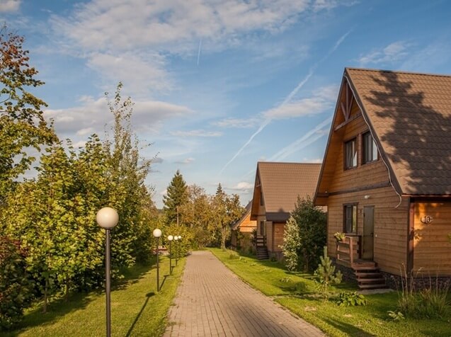 В каждом коттедже есть полностью оборудованная кухонная зона, два санузла и душевая комната. В некоторых коттеджах есть сауна и камин. Рядом с каждым коттеджем есть частная площадка для барбекю.