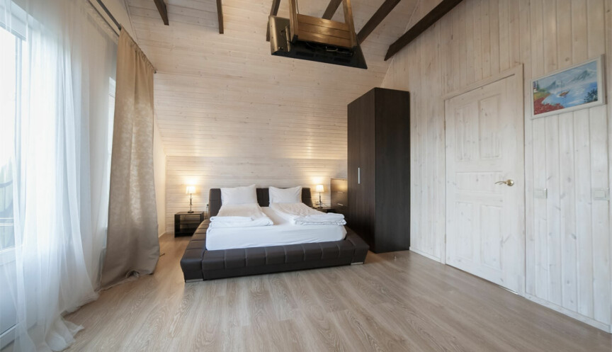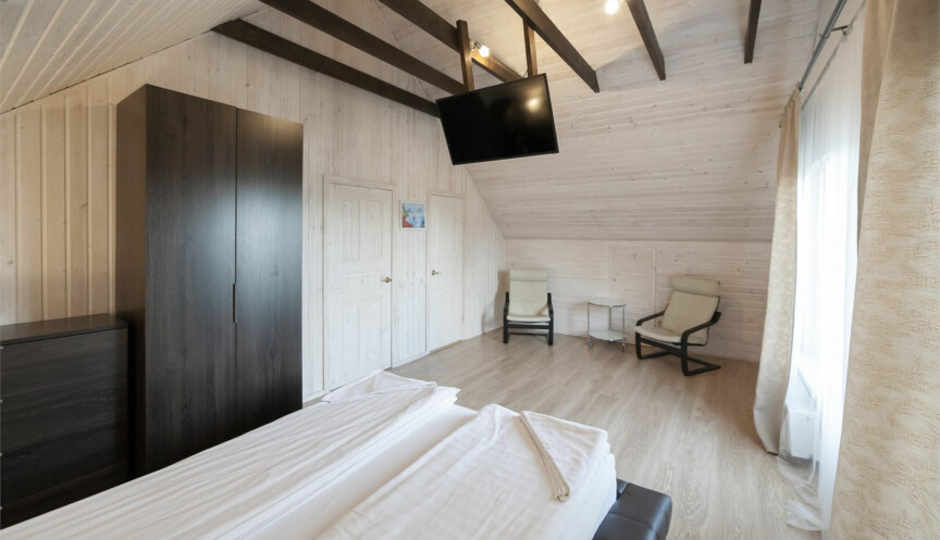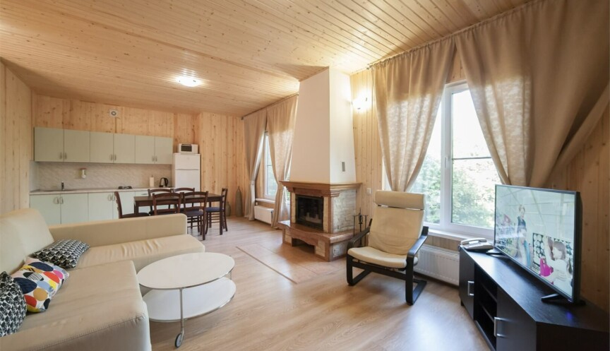 Двухэтажный современный коттедж с центральным отоплением, оборудованный уютной мангальной зоной для барбекю, камином. Возможно размещение 6 гостей + 2 детей на доп местах