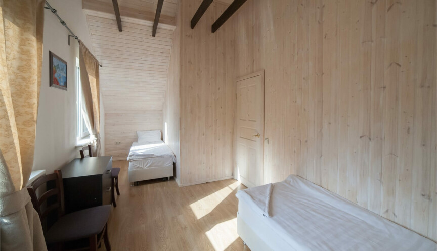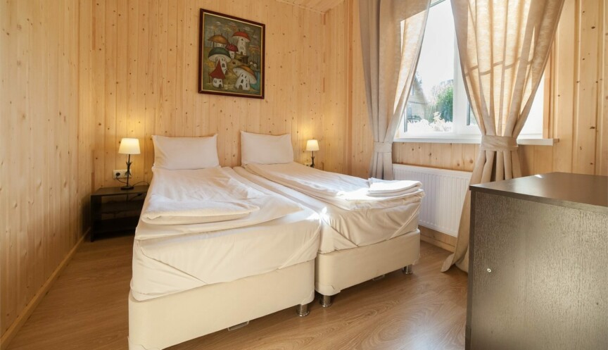 • 2 спальни: одна с двуспальной кроватью и одна с двумя односпальными кроватями
