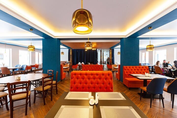 Завтраки проходят с 9.00 до 11.00, обеды с 14.00 до 15.00, ужины с 19.00 до 20.30/21.00 в будние/выходные дни.